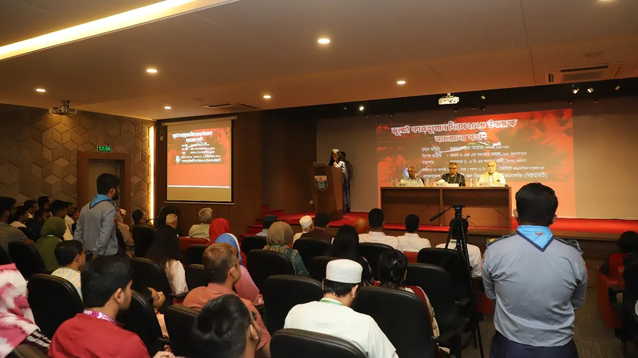 বাংলাদেশ ইউনিভার্সিটি অব বিজনেস অ্যান্ড টেকনোলজি (বিইউবিটি)-এর আন্তর্জাতিক সম্মেলন কেন্দ্রে ‘জুলাই গণঅভ্যুত্থান দিবস-২০২৫’ উপলক্ষে এক আলোচনা সভা অনুষ্ঠিত হয়। দিনটি যথাযোগ্য মর্যাদায় স্মরণ করাই ছিল এ আয়োজনের মূল লক্ষ্য।