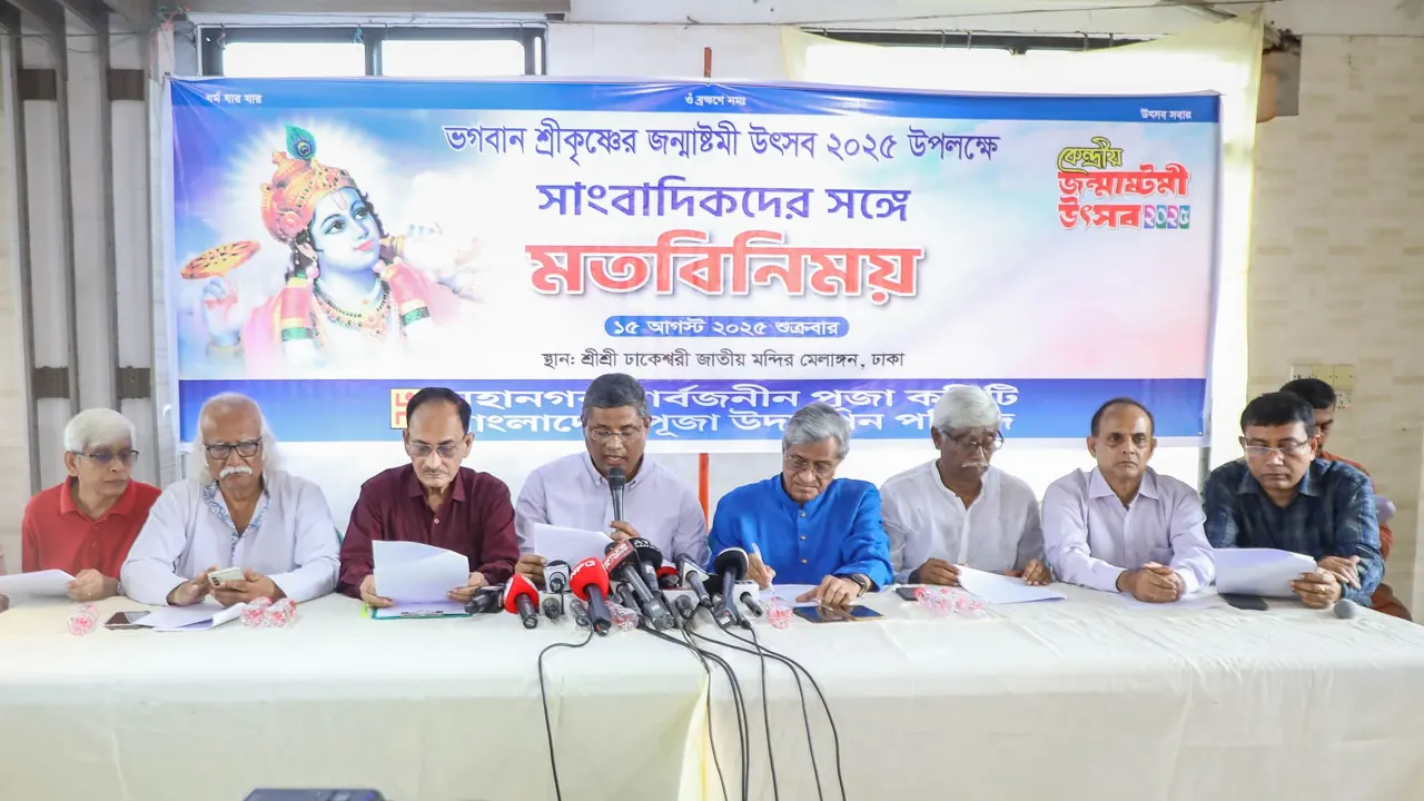 শুক্রবার (১৫ আগস্ট) সকালে রাজধানীর শ্রীশ্রী ঢাকেশ্বরী জাতীয় মন্দিরে জন্মাষ্টমী উৎসব-২০২৫ উপলক্ষে সাংবাদিকদের সঙ্গে মতবিনিময় সভায় লিখিত বক্তব্যে এসব তথ্য জানান মহানগর সার্বজনীন পূজা কমিটির সভাপতি জয়ন্ত কুমার দেব। বাংলাদেশ পূজা উদ্যাপন পরিষদ ও মহানগর সার্বজনীন পূজা কমিটি যৌথভাবে এই মতবিনিময় সভার আয়োজন করে।