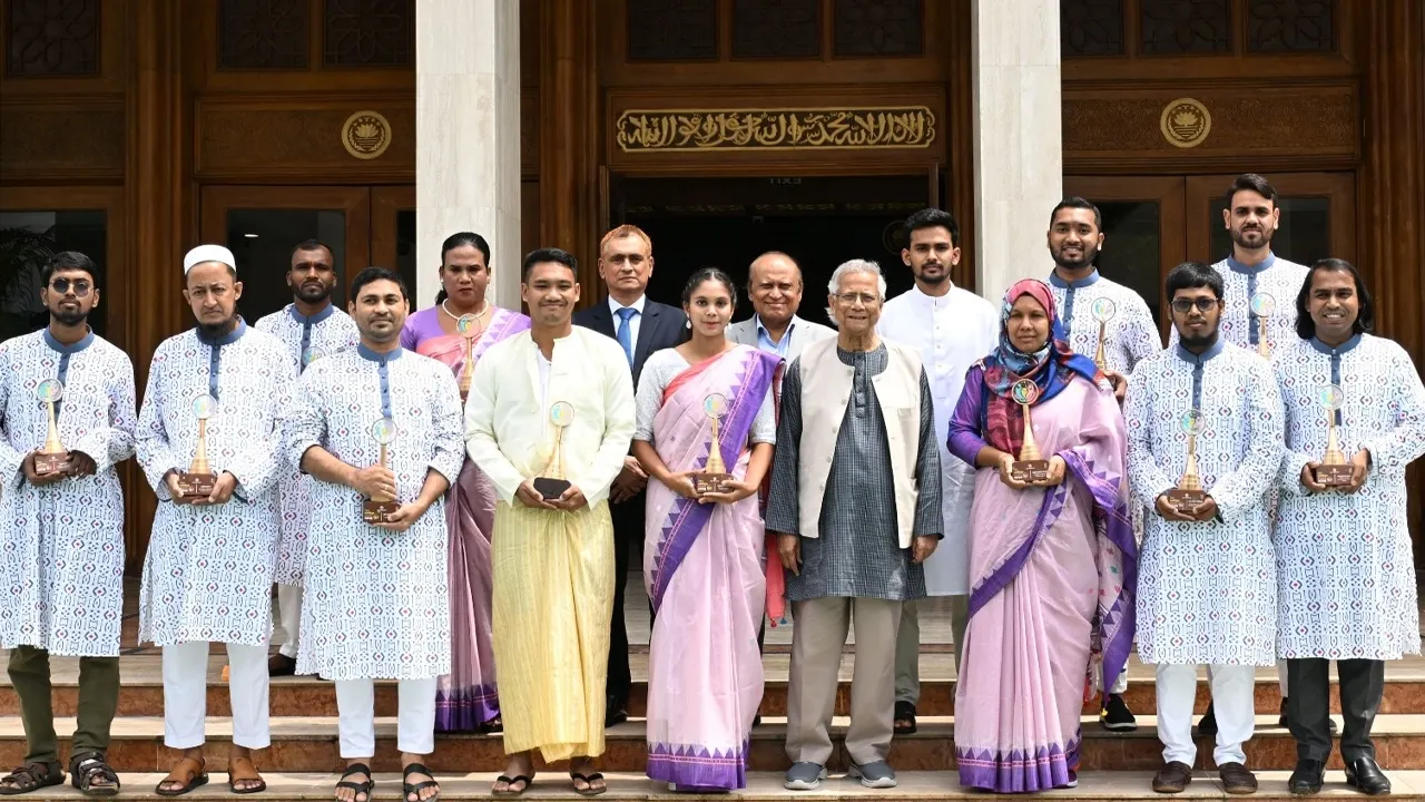 অন্তর্বর্তী সরকারের প্রধান উপদেষ্টা ড. মুহাম্মদ ইউনূস সোমবার (১৫ সেপ্টেম্বর) রাজধানীর তেজগাঁওয়ে প্রধান উপদেষ্টার কার্যালয়ে এ পুরস্কার তুলে দেন।