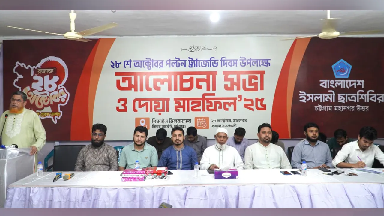 মঙ্গলবার (২৮ অক্টোবর) চট্টগ্রাম মহানগর উত্তরের সেক্রেটারি মুমিনুল হকের সঞ্চালনায় ছাত্রশিবির চট্টগ্রাম মহানগর উত্তর কর্তৃক আয়োজিত পল্টন ট্র্যাজেডি দিবস উপলক্ষে আলোচনা সভা ও দোয়া অনুষ্ঠানে তিনি এসব মন্তব্য করেন।